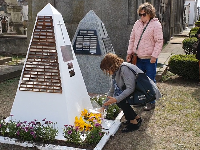 Como cada 11 de septiembre UDEB, el principal gremio docente, recordó a los siete docentes fallecidos este año y colocó en su memoria una ofrenda floral, entre los que se encuentra Nélida Arrieta (Pocha), quien además era presidente de Lalcec, por lo que hubo palabras que la recordaron y describieron por parte de representantes de esa entidad; lo mismo ocurrió, pero sin oradores, con los Maestros Jubilados que colocaron flores al pied el monolito que contiene las placas con los nombres de quienes ya no están físicamente.