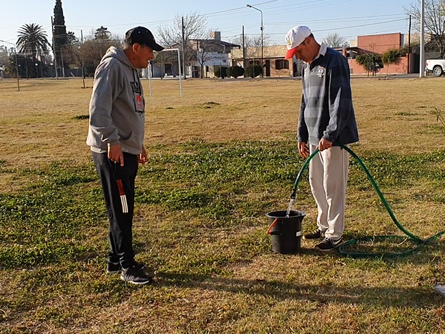 Luego del acuerdo entre las partes, cada mañana retiran de la casa de un vecino que facilita su patio la manguera, carretilla, palas y las plantas para iniciar con el trabajo. Hoy miércoles 14 de septiembre, día que tomamos las imágenes, pudimos ver el despliegue que realizan regando, plantando y recorriendo cada uno de los ejemplares que se pusieron cuidando la métrica y otros detalles, sabiendo que los cuidados son fundamentales en los primeros meses.