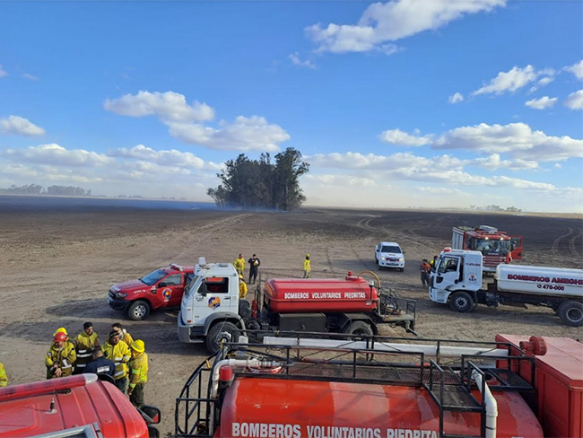 La magnitud del fuego, uno de los más importantes en los últimos años, obligó a que se dispusieran para su combate 12 dotaciones de los cuarteles de Piedritas, Santa Eleodora, Ameghino y General Villegas.
