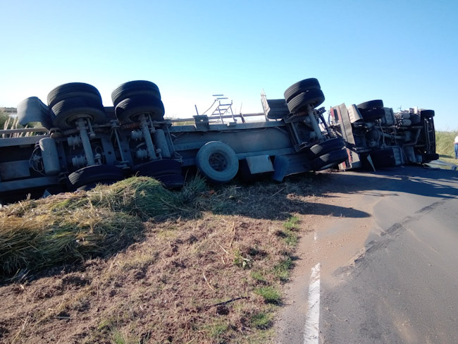 ESTA TARDE: volcó un camión que era conducido por un charlonense