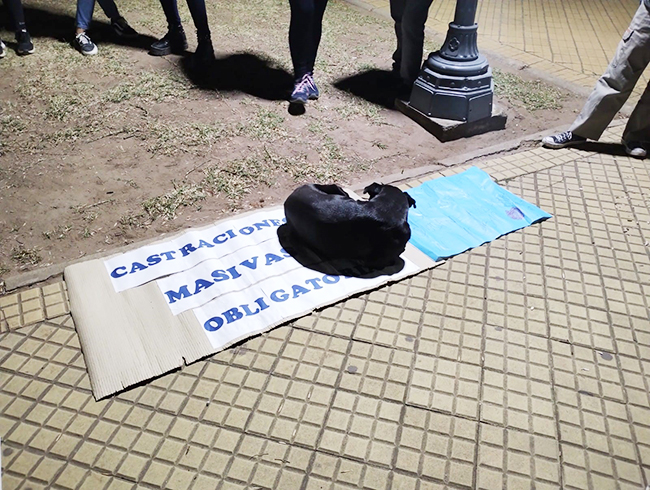 Este viernes a las 20:00 hs. principalmente activistas por los derechos de los animales y que trabajan por su bienestar se concentraron frente al Palacio Municipal con carteles con consignas pidiendo el cese de la medida que dispuso el municipio de levantar los perros en la calle y trasladarlos al Centro de Zoonosis hasta su retiro por parte de los dueños si los tuviera.