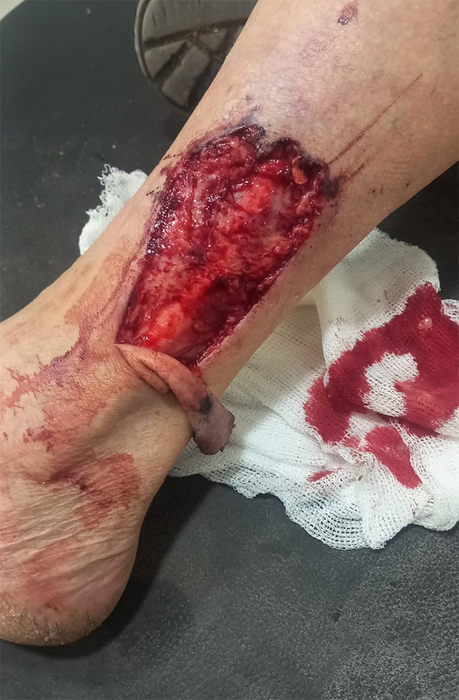 El hombre recibió 32 puntos en su pierna y lo espera una lenta recuperación. Estuvo cerca de ser alcanzado en una de las venas principales con lo que ello habría generado.