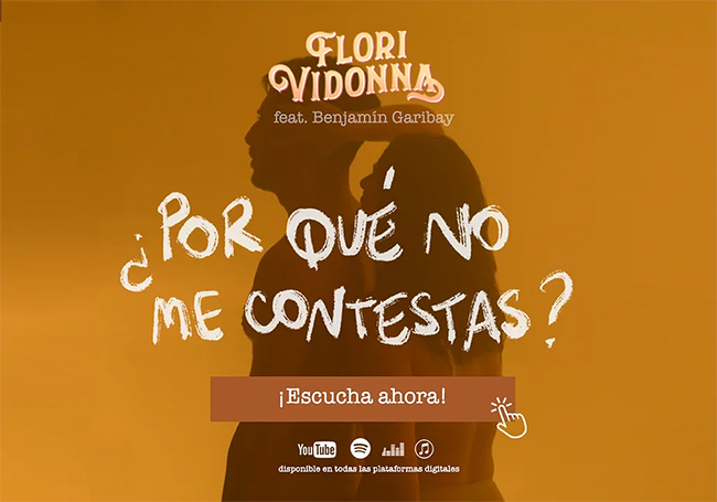 “¿Por qué no me contestas?” es el nuevo trabajo promocional que comparte la artista multidisciplinaria Flori Vidonna, una canción con una hermosa composición de cello y piano dando como resultado una versión profundamente vulnerable y conmovedora. La canción fue escrita desde el corazón de Flori, como ella relata, a partir de un evento que cambió su vida: el incendio de su departamento donde la pérdida más valiosa que el fuego se llevó fue su voz.