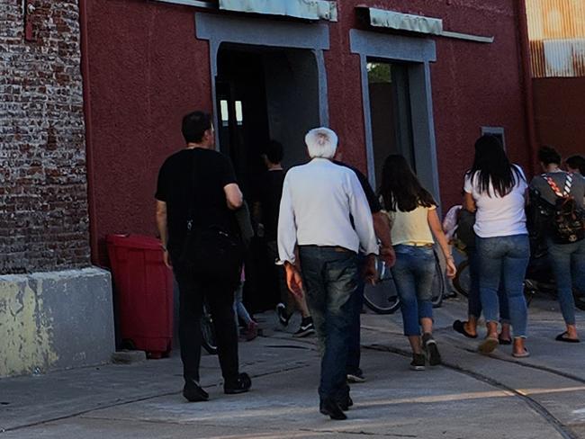 Luego de la imagen que forma la portada, registramos una segunda foto, ambos caminando hacia el ingreso principal del salón que albergaba el escenario en el que en minutos más se presentaría la obra (foto interior); la misma que a todos pondría frente a si mismos, especialmente a los grandes que suelen descubrir inconscientemente que sigue vivo el niño que alguna vez disfrutó de la magia del circo «de otros tiempos».