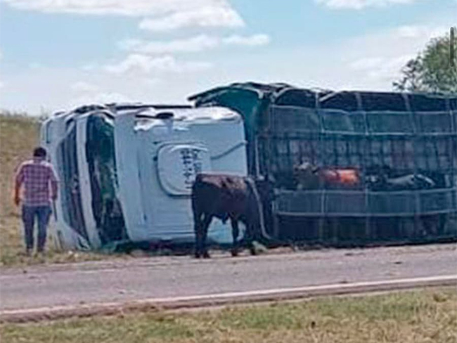 Por razones no establecidas perdió el control del rodado volcando chasis y acoplado, pudiendo algunos animales salir y deambular por la ruta y banquinas, mientras que otros murieron. La situación que por momentos se volvió peligrosa por los vehículos que circulaban, no tuvo otras consecuencias.