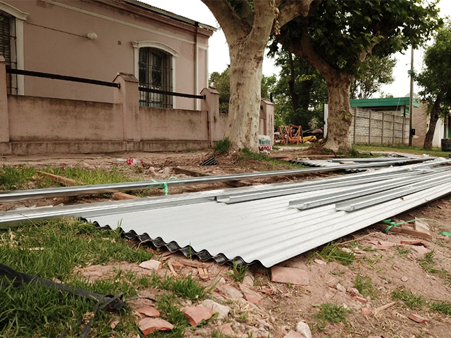 «Actualmente estamos trabajando en el recambio total de las tejas existentes, por chapa pre pintada color negra, por un total de 356 metros cuadrados. Esta parte de la obra, no solo mejorará la cobertura de la edificación, sino que permitirá recuperar espacios interiores.