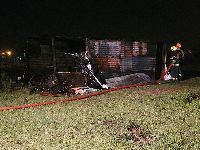 La sirena de bomberos se oyó a las 2:00 de la madrugada de este domingo, el motivo, el incendio en una de las viviendas de chapa, palos y silobolsa de la quinta La Escondida, conocida como El Chaparral, ubicada en la continuidad de la calle Quilmes.
