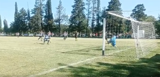 El autor del gol, de penal, fue Facundo Subiaga, que definió fuerte al medio (captura imagen de Mariano Berón).