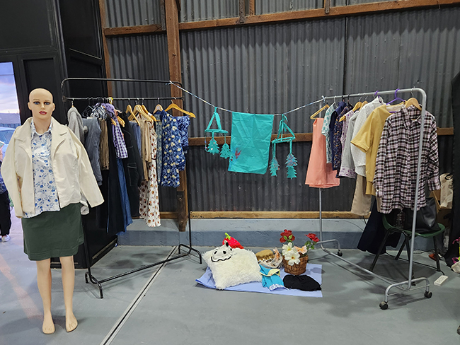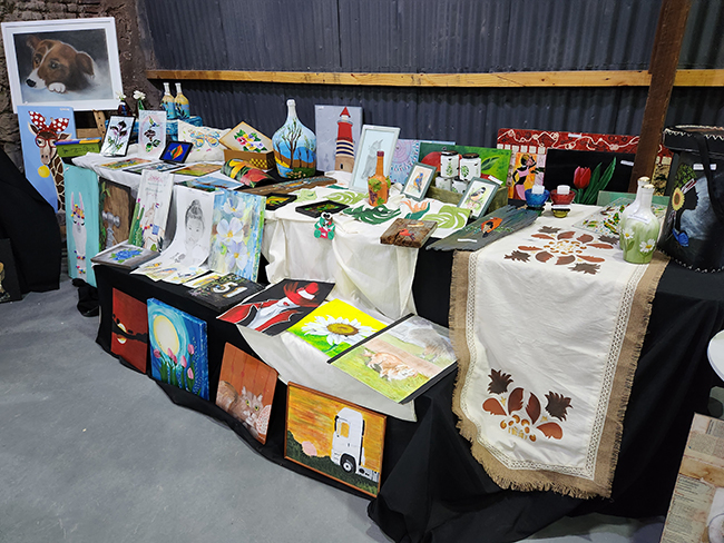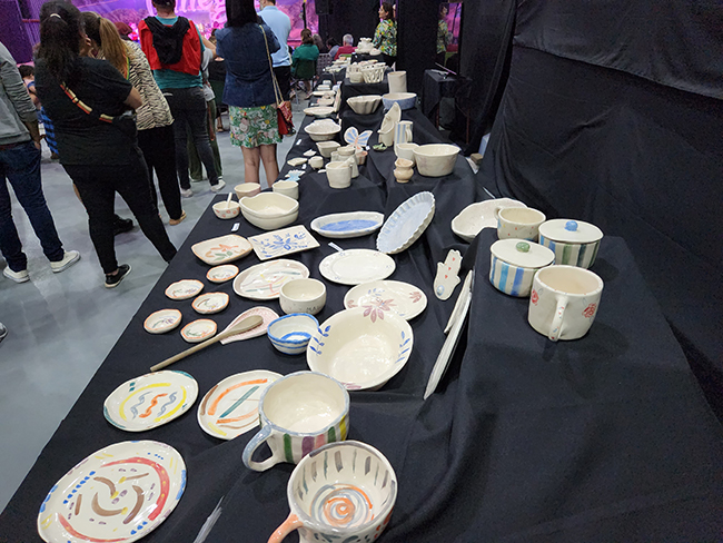 El amplio espacio permitió un gran despliegue de las piezas de cerámica realizadas en los talleres coordinados por Ángeles Mellana, de Marroquinería y Telar a cargo de Walter Cassano, Platería de Juan Carlos Nuñez, los Dibujos y Pinturas de los alumnos de Gabi Navas y las confecciones textiles coordinadas por Mónica Urquiza.
