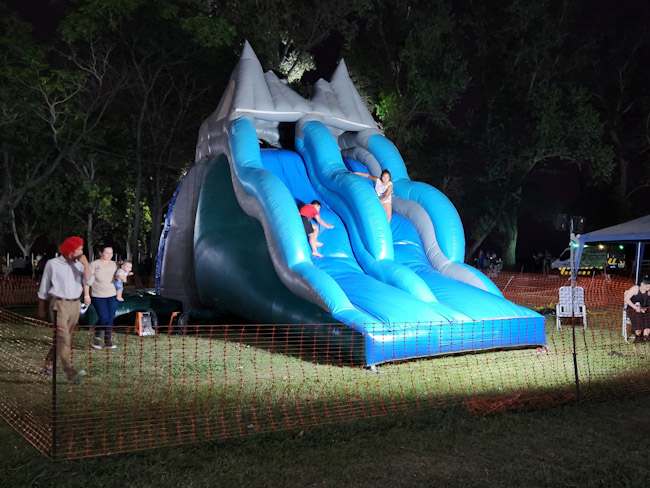 Anoche la tormenta jugo una mala pasada al tradicional evento que por la lluvia y fuerte viento debió suspender la primera noche luego de la caída de una palmera y cables que dejó a la localidad sin luz hasta este mediodía; pero como buenos bonaerenses del interior.profundo hoy todo volvió a la normalidad y la Fiesta de la Vaquillona está en marcha en el Parque bajo un cielo cubierto de estrellas.