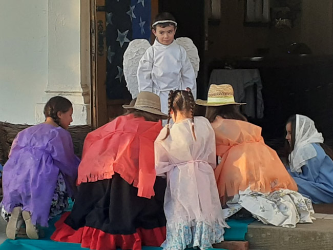 Esta tarde, en vísperas de la Nochebuena, niños y niñas de catequesis y algunos de sus hermanos realizaron el tradicional pecebre viviente en la Parroquia San Francisco de Asís.