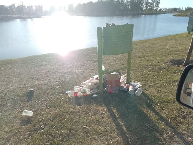 Esta mañana el personal a cargo del mantenimiento en el parque Municipal se sorprendió gratamente con lo que observaba; los residuos que las juntadas nocturnas que se extienden hasta las primeras horas de la mañana, sobre todo en esta época del año, habían sido juntados y colocados en los cestos y debajo de éstos prolijamente, evitando de ese modo que las botellas y otros elementos se esparcieran por el predio o cayeran en la laguna.