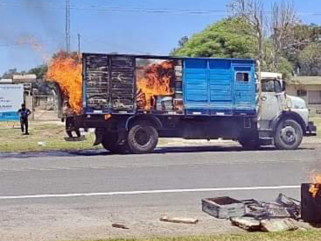 La violencia de las llamas arrasó con la carga completa, pese al accionar de los bomberos voluntarios todo sucumbió ante el fuego.