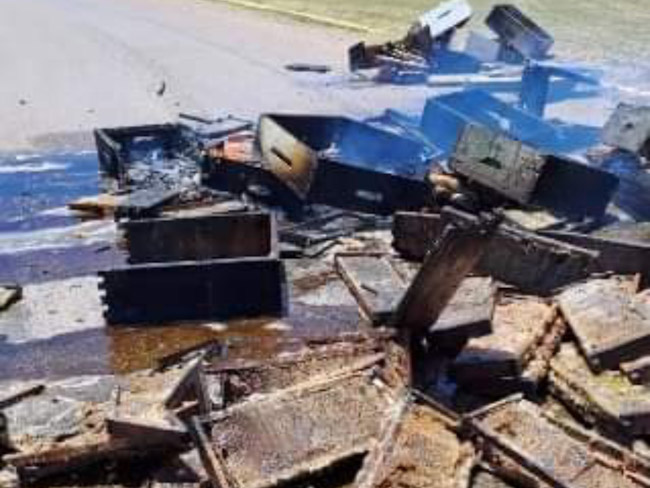 Un camión cargado con los cajones de apicultura recién «cosechados» y que eran llevados rumbo a la sala de extracción se incendió, informó estavtarde Infotec.