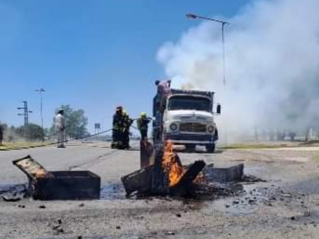 Ruta 188: se incendió un camión cargado con cajones de apicultura listos para extracción