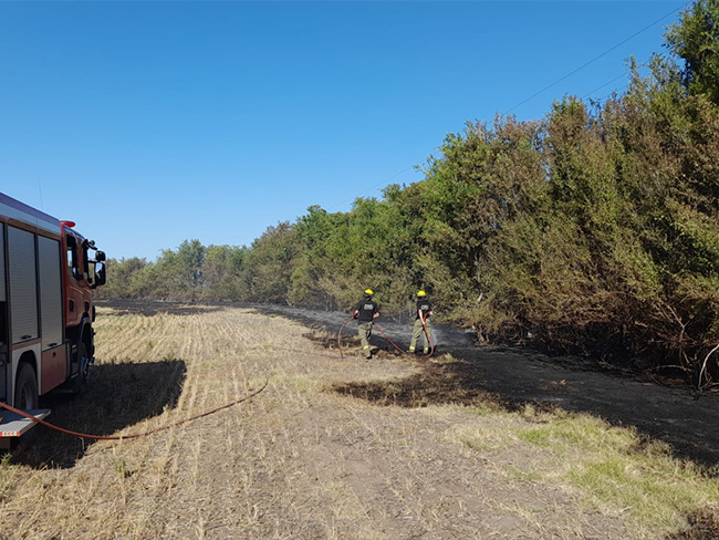 Las altas temperaturas son enemigas naturales de cualquier voluntario que entra en acción dotado del equipo necesario para el combate de las malezas, como sucedió en este caso. Si bien es la tarea para la que se entrenan permanentemente, es de destacar a lo que se exponen.