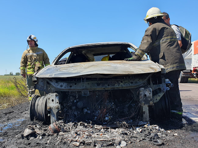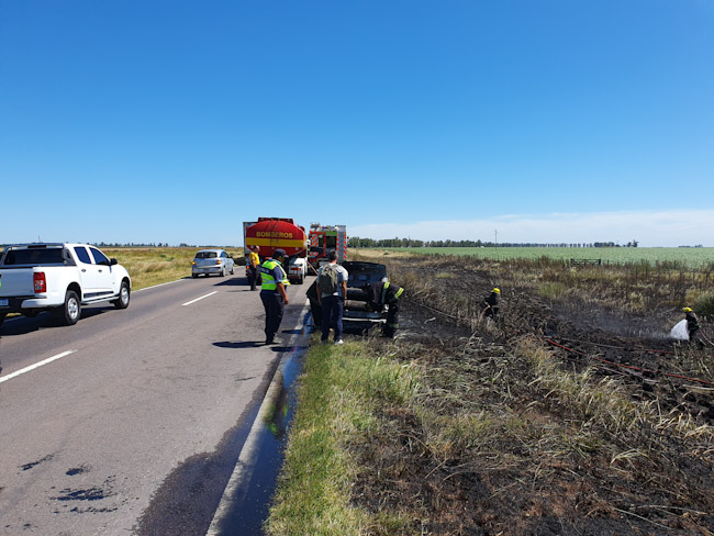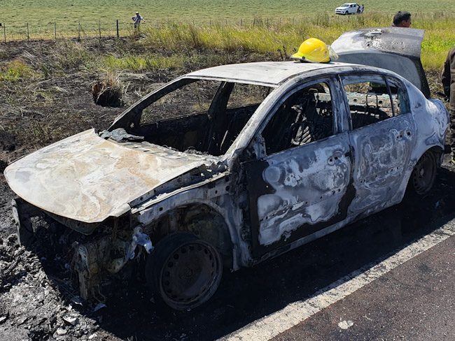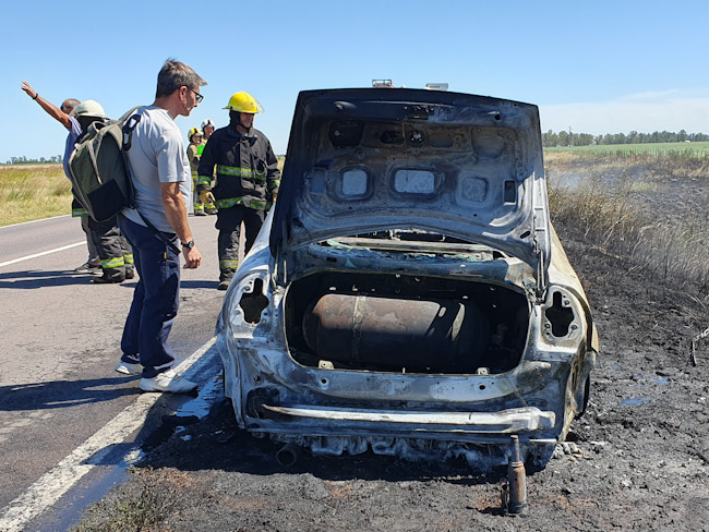 Unos metros antes de llegar a estancia Milla có el vehículo se vio envuelto en llamas sin nada que hacer para el único ocupante que pudo salir y con la ayuda de otras personas que se detuvieron en su ayuda rescatar algunos elementos del interior.