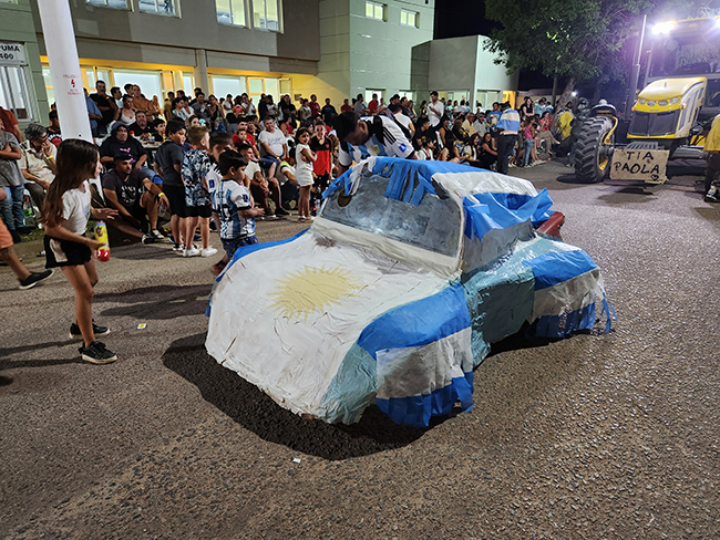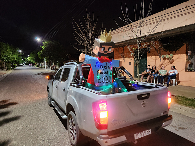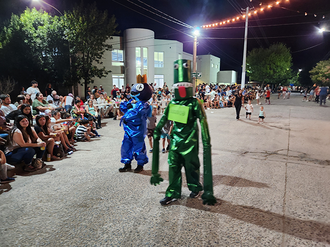 En el inicio el Rey Momo encabezó la caravana portando en su pecho, como se observa en la imagen de Distrito Interior, la ya popularizada frase «Andá pa allá bobo» y detrás, portando el estandarte uno de los personajes del carnaval de la localidad; el resto fue alegría, variedad y la confirmación valió la pena concurrir.