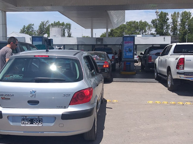 IMÁGENES ENVIADAS POR LA GENTE: interminables colas de vehículos para cargar combustible en la YPF de General Villegas