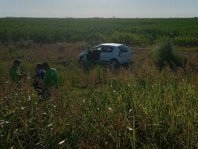 Esta tarde, 18:30 hs. un Renault Sandero que era conducido por un hombre de 62 años, domiciliado en Villa Martelli, al que acompañaba otra persona de 50, se despistó a la altura del kilómetro 394 de la Ruta Nacional 33 a unos 5 kilómetros de General Villegas.