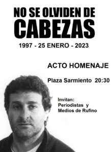 En Rufino homenajearán a José Luis Cabezas al cumplirse un nuevo aniversario de su asesinato