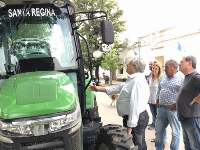 En esta oportunidad se exhiben tres tractores que serán de uso exclusivo en Banderaló, Santa Regina y Cañada Seca, dos motoniveladoras de 190 HP, un tractor de 180HP con niveladora de arrastre y tres tractores de 80HP correspondientes a la Dirección de Vial y dos camiones de 170HP con caja volcadora que serán utilizados por la Dirección de Servicios Urbanos.
