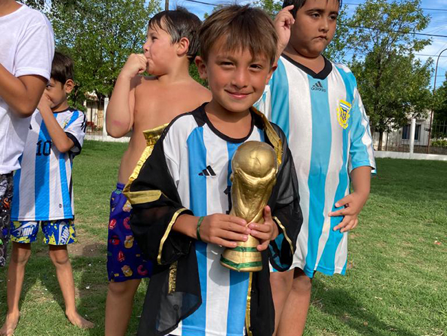 Como tantos niños y niñas a lo largo y ancho de nuestro país después de obtenida la Copa del Mundo en Qatar en cada oportunidad que tienen celebran el triunfo mundial o rinden homenaje a los campeones.