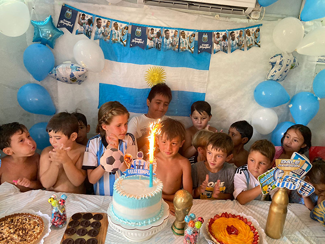 Así fue como Benjamín Bazán, que acaba de cumplir 6 años el 23 de enero, pero los festejó el domingo, eleigió como temática la Selección Nacional con festejo «a lo Messi» incluído.