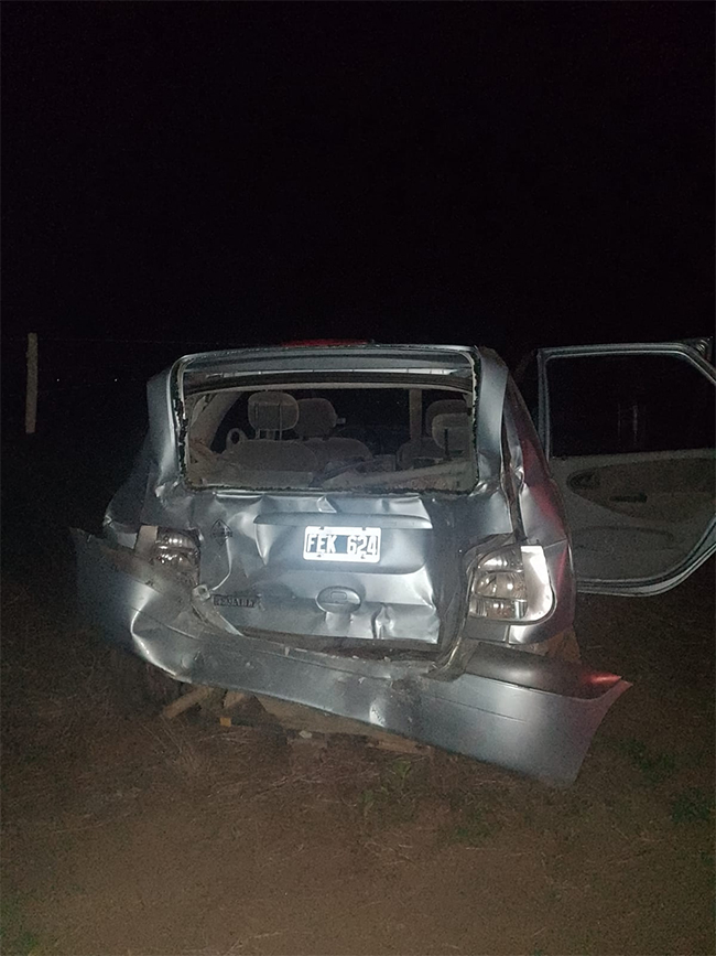 Como consecuencia del impacto, el vehículo impactado se despistó hacia la banquina donde finalmente quedaría, con los daños materiales que se aprecian, en tanto las personas involucradas, algunos de ellos que sufrieron golpes y cortes menores, fueron asistidos en el lugar por el personal del SAME.