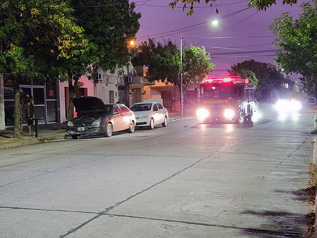 Esta tarde a las 20:00 hs. un automóvil marca Citroen circulaba por la calle Pringles y Castelli cuando el motor sufrió una falla, unos metros más adelante, en Pringles entre Castelli y Rivadavia, los ocupantes, una pareja con sus hijos menores de edad, advirtieron humo y fuego salir del capo.