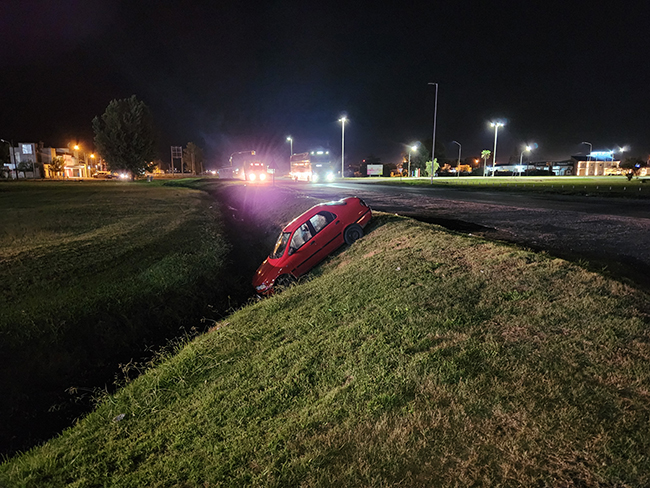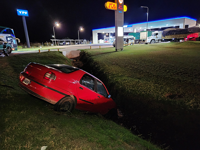 Pasadas las 20:30 del jueves un automóvil Fiat Siena que era conducido por un villeguense cayó dentro del profundo zanjón que se encuentra paralelo a la Ruta 188, como parte del predio de la estación de servicio YPF, frente al ingreso principal a General Villegas.