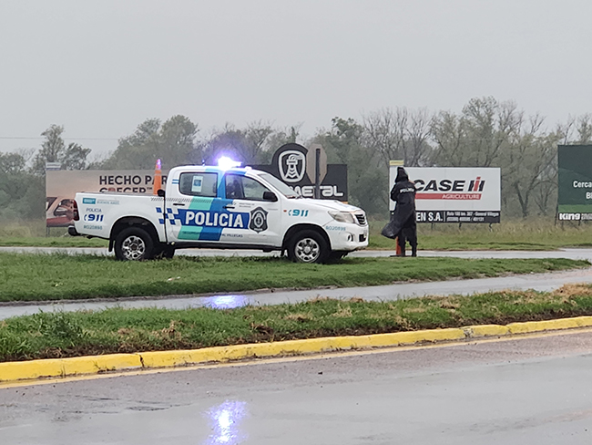 Esta tarde y bajo la intensa lluvia la Policía de Seguridad Vial y sus pares de la Comunal montaron un operativo de control ante el paso de la hinchada de Olimpo de Bahía Blanca que viaja hacia el Chaco donde mañana el equipo se enfrenta a Boca Juniors en el estadio Centenario.