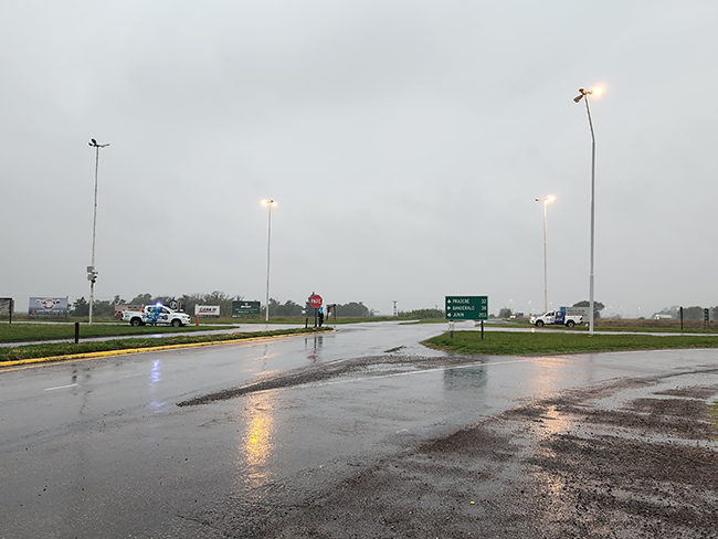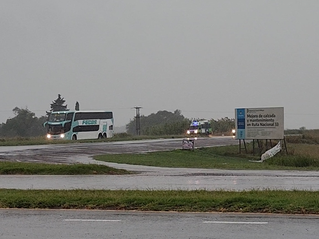 Un móvil local encabezaba la caravana de los cinco micros en su paso por el distrito en su viaje por la Ruta 33, mientras que otros dos se apostaron en el cruce con personal uniformado sobre la traza, a su vez la estación de servicio YPF permaneció totalmente cerrada al acceso del público por unos minutos preventivamente.