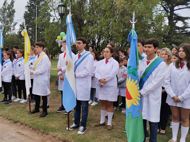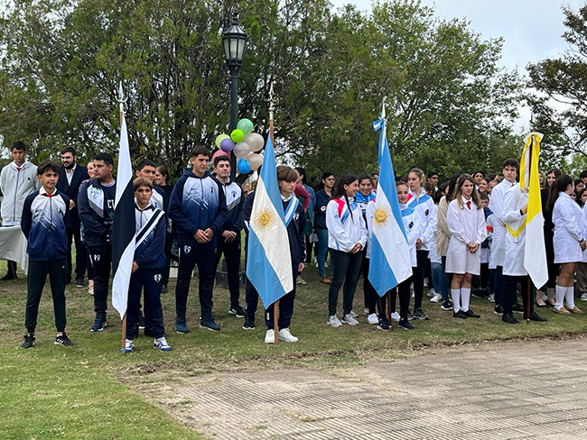 Luego de izar el Pabellón Nacional y entonar las estrofas de nuestro Himno Eduardo Campana, Liliana Lovagnini, y Marina Justo colocaron una ofrenda floral en recordatorio al fundador Emilio Vicente Bunge.