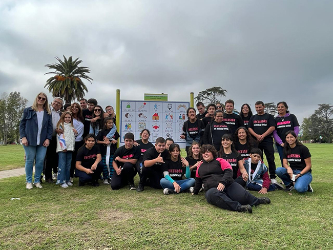 Finalmente se descubrió en un lugar de la Plaza Principal un panel de comunicación realizado por la Escuela Especial N°502 con pictogramas que tiene como finalidad complementar el lenguaje verbal a través del uso de símbolos gráficos para la comunicación (fotografías, pictogramas, letras, palabras y/o frases).