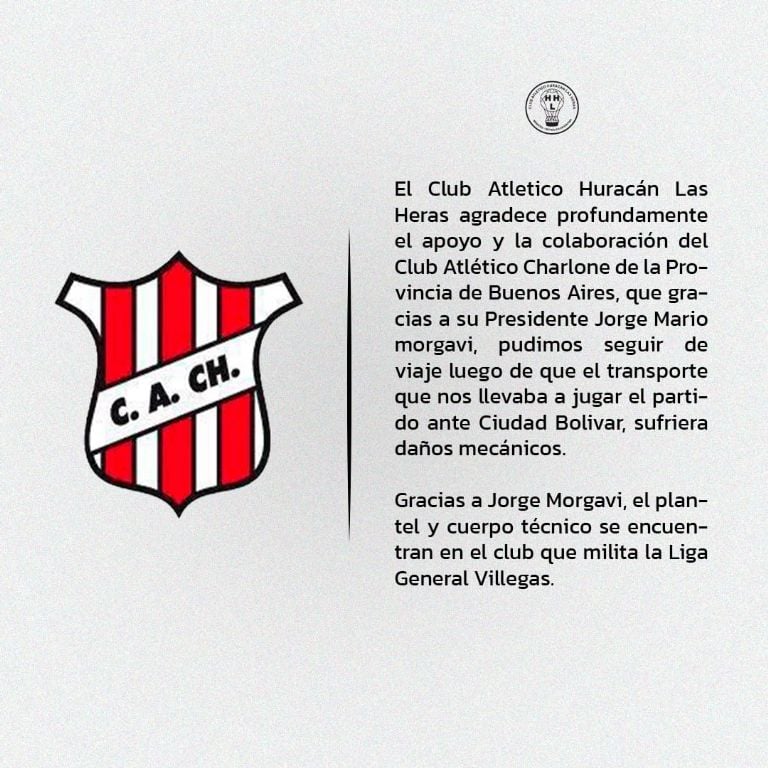¿Qué tienen en común Huracán Las Heras y el Club Atlético Charlone? Desde hoy, mucho más que los colores rojo y blanco que comparten en sus escudos. El Globo viajaba rumbo a la ciudad de Bolívar para afrontar el compromiso de mañana válido por la sexta fecha del Federal A, cuando el colectivo sufrió un desperfecto y tuvo que parar en plena ruta.