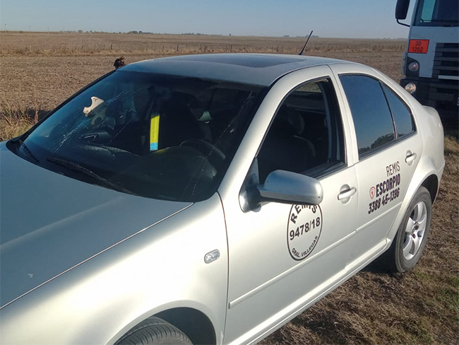 El automóvil, un Volkswagen Bora perteneciente a Remis Escorpio circulaba en dirección Villegas – América detrás de un camión al servicio de YPF, de General Pico, La Pampa, cuando a éste se le partió una llanta desprendiéndose parte del material que se clavó directamente en el parabrisas.