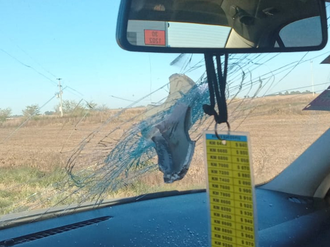 «De no haber sido porque quedó incrustado en el parabrisas pudo haber sido una tragedia», explicó Toledo a Distrito Interior que trasladaba a una persona quien entró en shock producto de la situación.