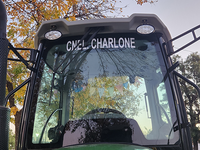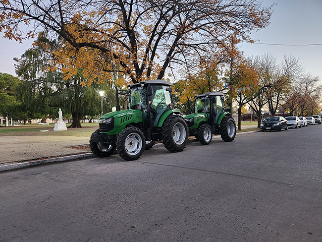 Las Delegaciones de Coronel Charlone y Bunge recibirán dos tractores nuevos que esta mañana se exhiben frente a la Municipalidad