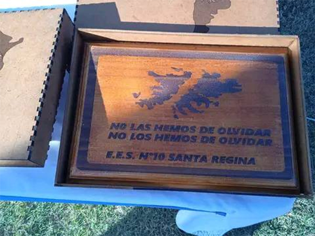 La iniciativa que partió de los alumnos de la escuela secundaria N° 10 de Santa Regina tiene como objetivo el honor y reconocimiento de manera general a todos los que lucharon en la Gesta de Malvinas, pero particularmente a su héroe de guerra, el santareginense Rubén Leyton cuyo nombre está plasmado al pie de las frases que forman el mural.