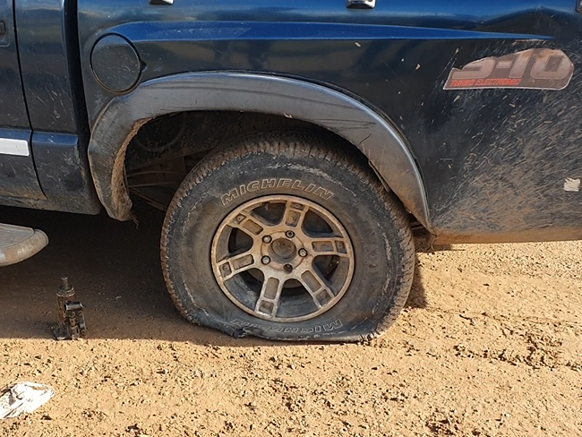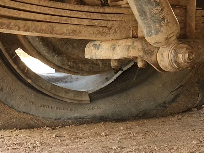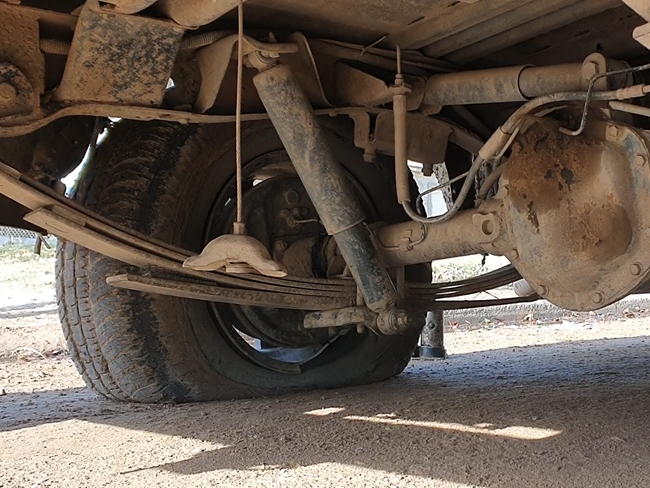 El pesado elemento le dañó el estribo, el paquete de elásticos, la cubierta trasera y partió la llanta, dejando a la pick up sin control que detuvo su marcha luego de haber recorrido unos cuantos metros.