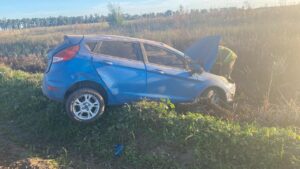 En la tarde del domingo un automóvil Ford Fiesta despistó y volcó sobre la banquina cuando circulaba en sentido Villegas Piedritas a la altura del santuario del Gauchito Gil, frente a la estancia La Ema.