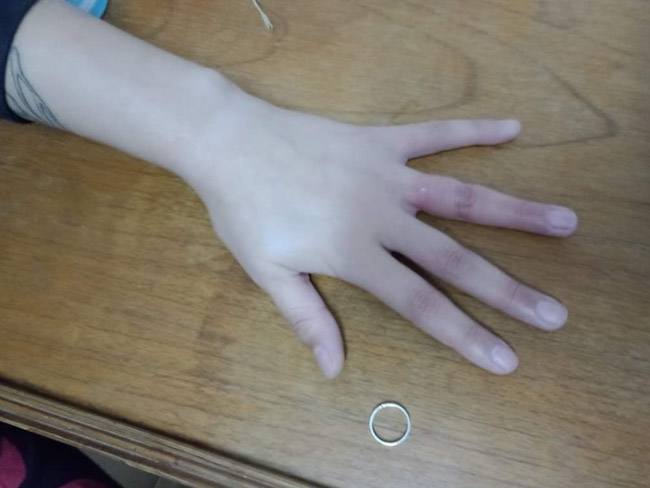 Una joven mujer llegó solicitando ayuda para poder quitarse el anillo que había intentado anteriormente sin éxito, incluso, complicando las cosas dado que se le había hinchado el dedo en que lo tenía colocado y eso, además de impedir que lograra el cometido, le producía dolor.