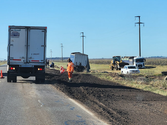 Levantaron y retiran el camión volcado esta madrugada en la Ruta 188