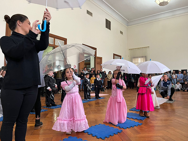 En primer lugar las palabras a cargo de Andrea Rossiello Inspectora del Nivel Inicial quien señaló: “No debemos quedarnos solo con una imagen poética de los próceres. La revolución implica esfuerzo y trabajo.