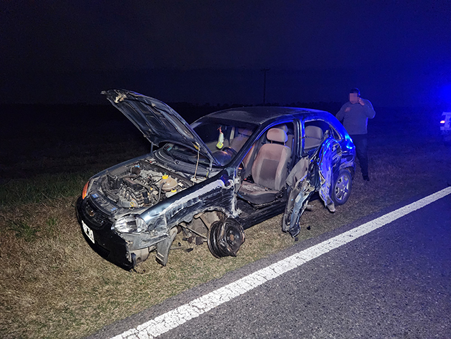 A la medianoche, un automóvil Chevrolet Corsa que circulaba hacia Villegas, conducido por Luis Álvarez, único ocupante, rozó a un colectivo de turismo que viajaba en sentido contrario proveniente de San Rafael, Mendoza, con destino Buenos Aires de donde es el pasaje.