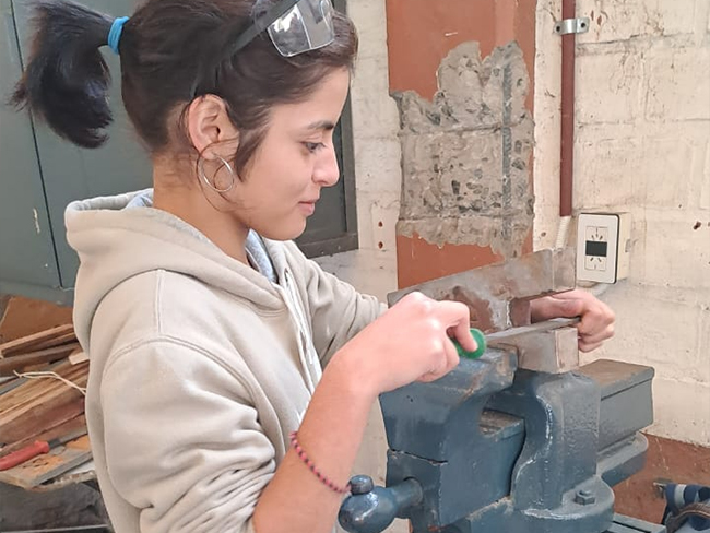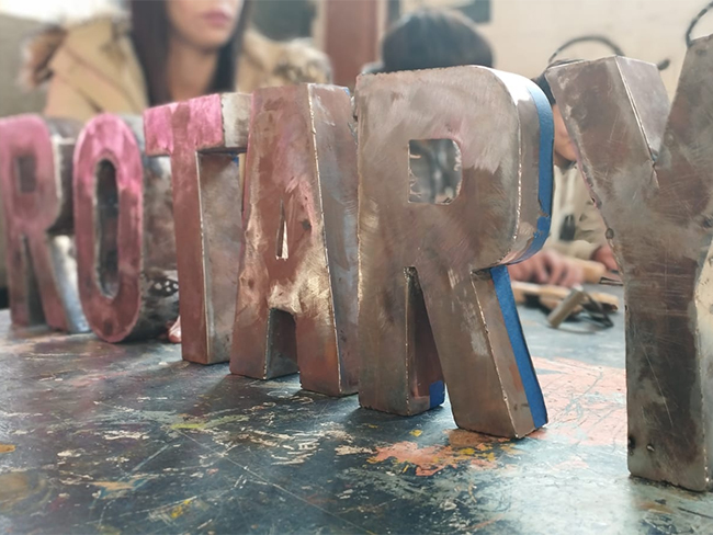 Alumnos de la Escuela Técnica construyen las letras del monolito de Rotary ubicado en el ingreso a General Villegas