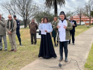 Este lunes 19 de junio se realizó el acto protocolar en la Plaza Principal de la localidad presidido por la Jefa de Gabinete, Marina Justo, junto al Delegado Municipal Eduardo Vuillermet, acompañados por Natalio Latanzi, Intendente de Rufino.