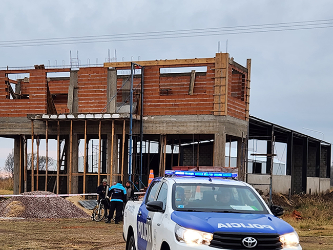 Esta mañana minutos antes de las 9:00 hs. un hombre de 41 años, identificado como Adrián Muruchi que se encontraba trabajando en la construcción de un galpón tipo tinglado, frente al Destacamento de la Policía de Seguridad Vial, tocó accidentalmente uno de los cables de la línea de media tensión que se encuentra cerca del andamio cuando manipulaba una estructura de hierro.