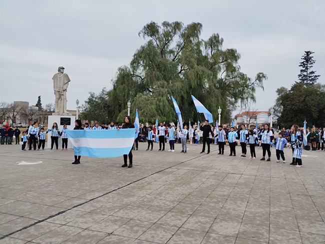 La representación alusiva estuvo a cargo de alumnos de la Escuela Especial N° 501 en un emotivo acto evocando los colores “de la celeste y blanca”. Para dar por finalizado el acto protocolar se entonaron las estrofas de la Marcha “Mi Bandera”.